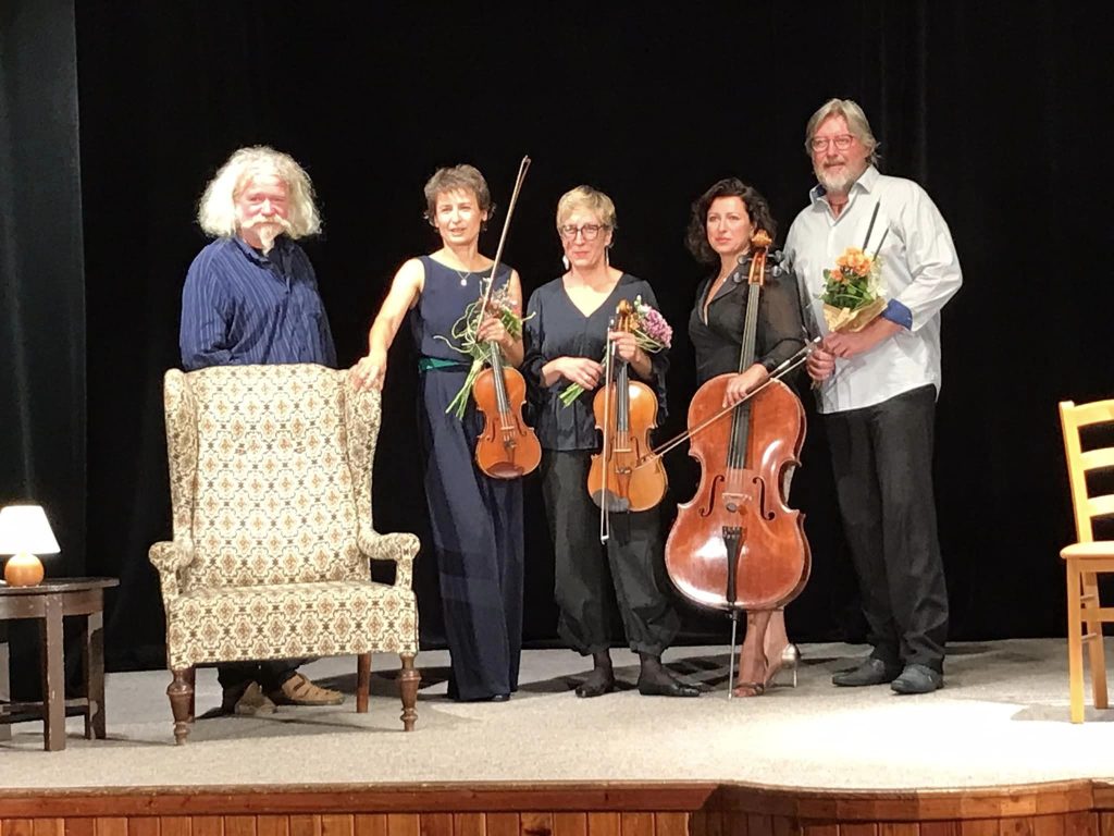 Die anschließende Lesung aus Fühmanns Erzählung „Das Judenauto“ wurde musikalisch umrahmt von Barbara Linke-Holicka, Bratsche, Lenka Machova, Geige, sowie Hana Baborakova-Shabuova, Cello, vom Baborak-Ensemble.