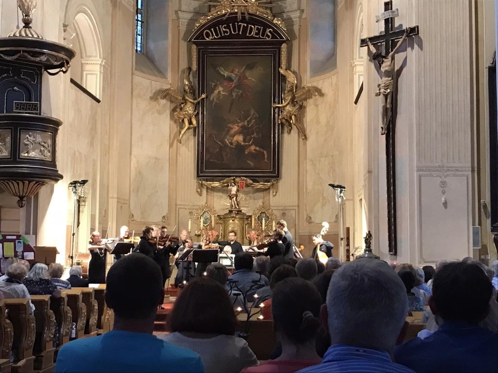 Das Publikum in der vollbesetzten Kirche lauschte begeistert den Kompositionen von Jan Václav Stamic, Erwin Schulhoff, Antonín Dvořák, Johann Sebastian Bach sowie Wolfgang Amadeus Mozart.