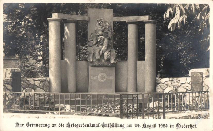 Alte Postkarte des Niederhofer Kriegerdenkmals.
