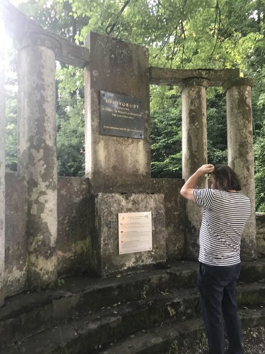 Das Niederhofer Kriegerdenkmal im Jahr 2023 (mit dem Restaurator);