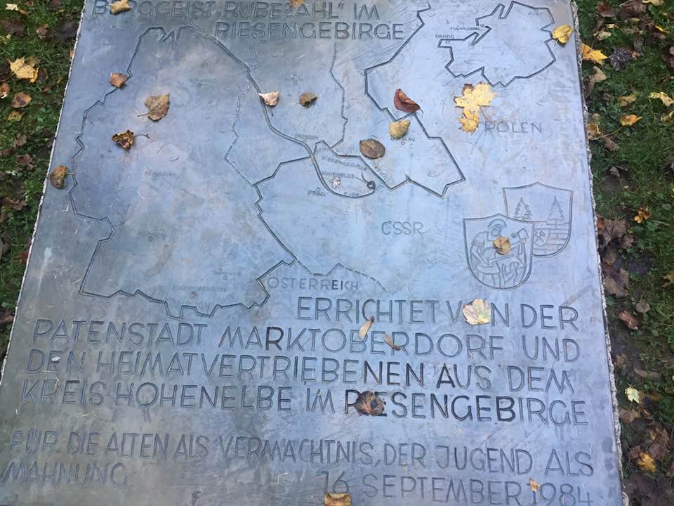 „Errichtet von der Patenstadt Marktoberdorf und den Vertriebenen aus dem Kreis Hohenelbe im Riesengebirge.