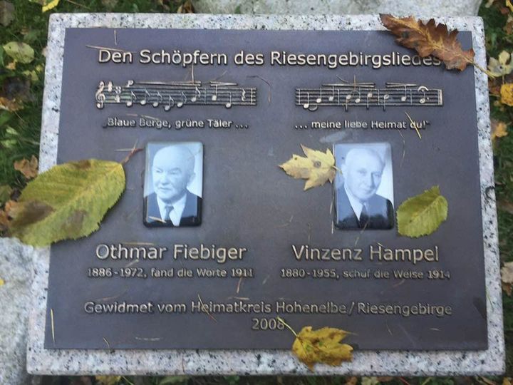 Zu Füßen des Herrn der Berge stehen seit Sommer 2008 zur Erinnerung an die Schöpfer des Riesengebirgsliedes Granitstelen.