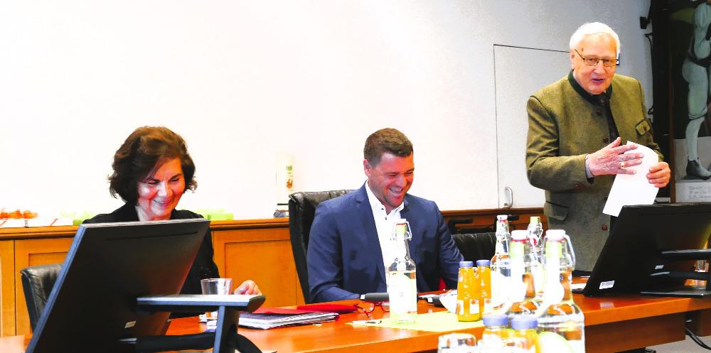 3. Bürgermeister Michael Eichinger und der Ehrenvorsitzende des Heimatkreises Hohenelbe Christian Eichmann beim Empfang im Sitzungssaal des Marktoberdorfer Rathauses am 04.10.2025