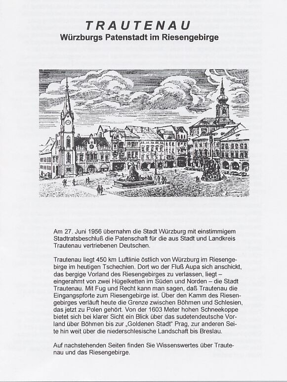 Der Riesengebirgler Heimatkreis Trautenau e. V. hat seinen Sitz in Würzburg, in der Neubaustraße 12, einem alten Barockhaus..